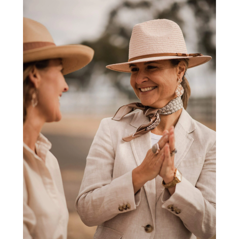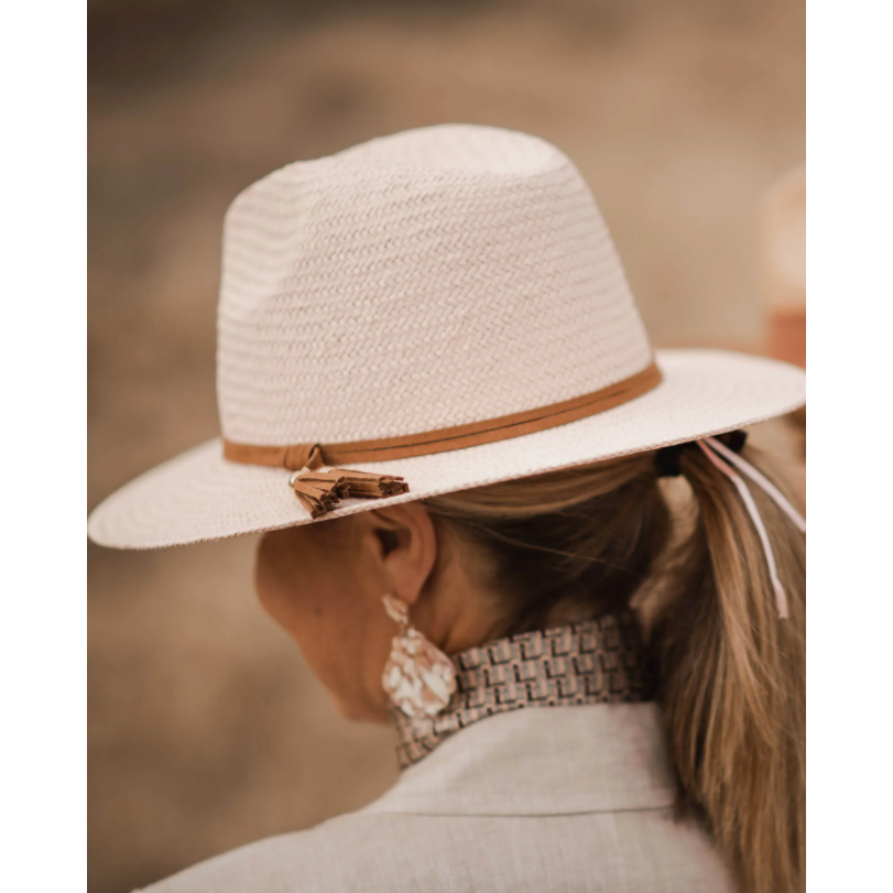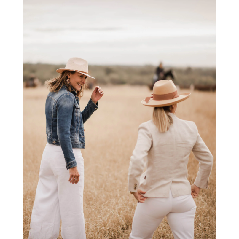 The Louenhide Sahara Hat is a wide brim, stunning hat that features a understated suedette tie for the ultimate boho chic look. Pair with your favourite monochrome look and let the Sahara do the talking. Drawstring adjustable inner lining, one size fits all.