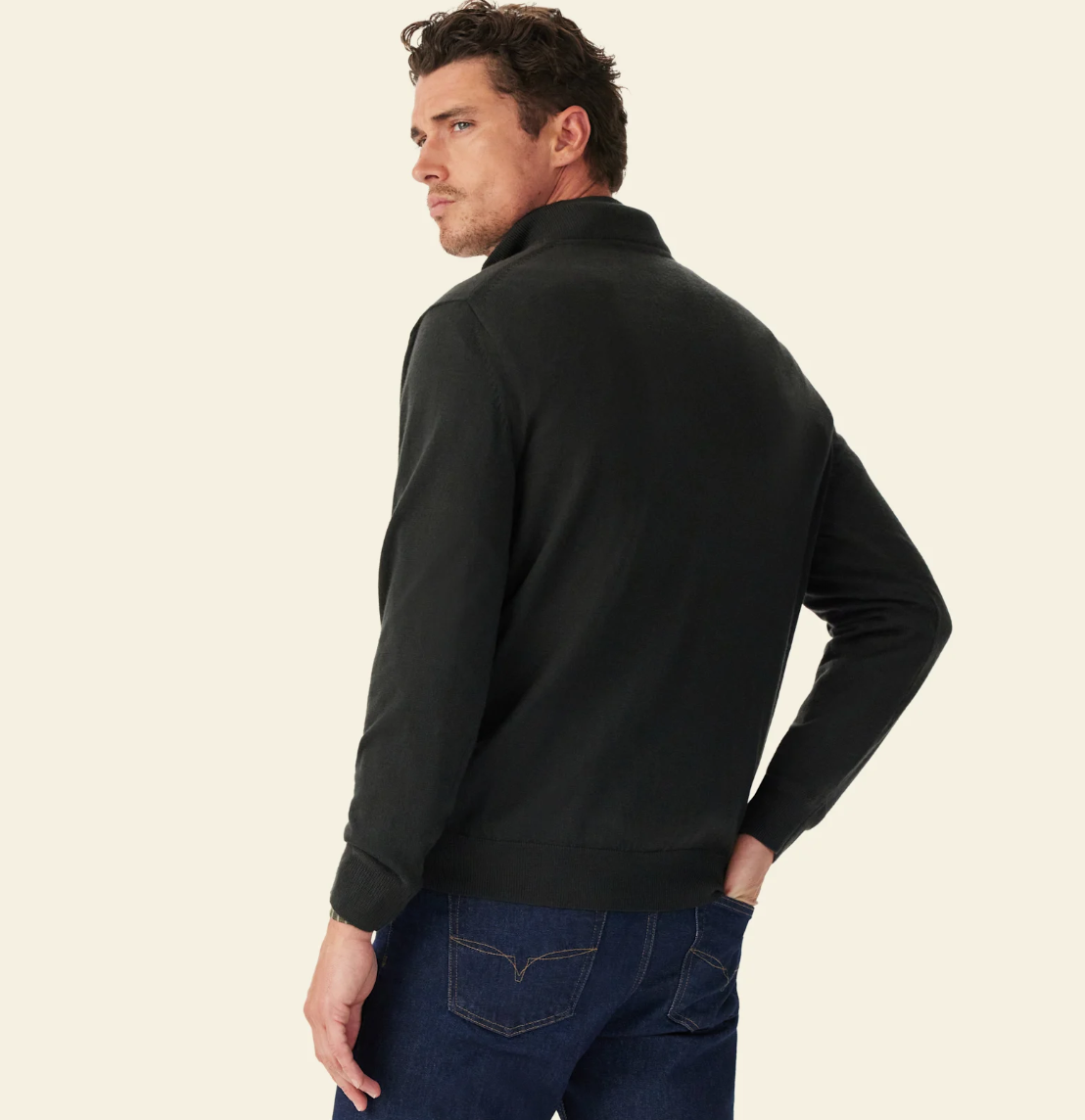 This quarter-zip knit features a branded leather puller, full-length sleeves with ribbed cuffs, and a straight ribbed hem. Crafted from Australian extra-fine merino wool in a lightweight jersey knit, for effortless layering.
